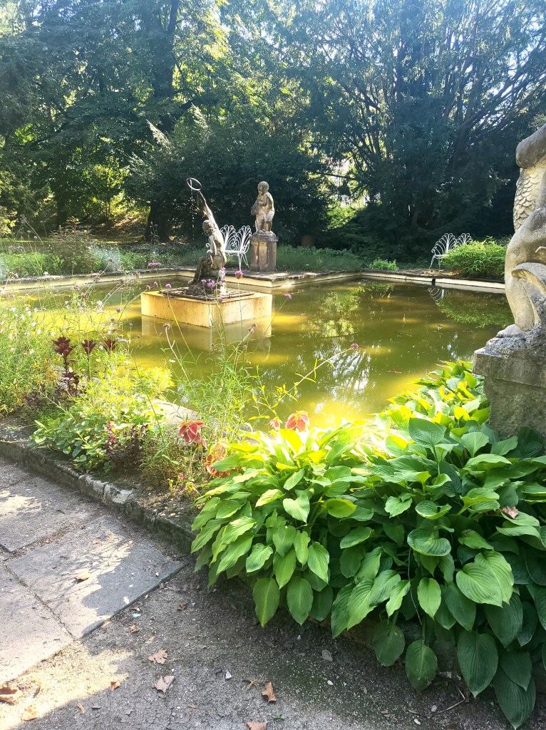 Etter både lunsj og gjørmebad fikk jeg muligheten til å ta hagen i nærmere ettersyn og med min romantiske og fantasifull hjerne var jeg ikke sen om å drømme meg bort. En nydelig liten dam med små statuetter omkranset av vakre blomster. Her var nok av muligheter til å gi seg litt «tid til ettertanke».
