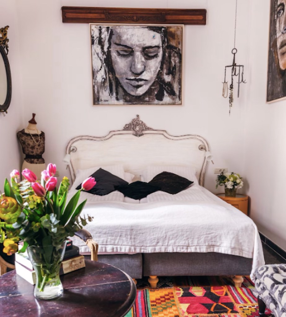 Rommet var intet mindre enn en oase av komfort og eleganse. Den vakre innredningen, fra antikke møbler til moderne kunstverk og art deco skapte en harmonisk blanding av gammelt og nytt. Rommet var ikke stort, men det var plass til et par stoler og en dobbeltseng.